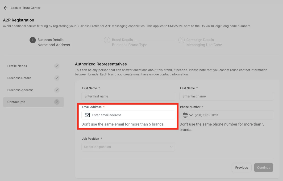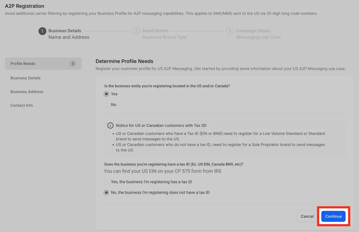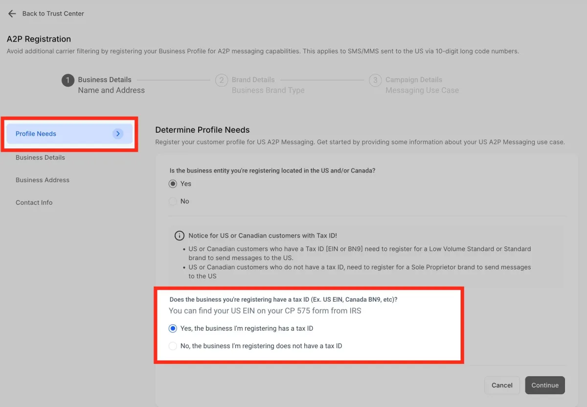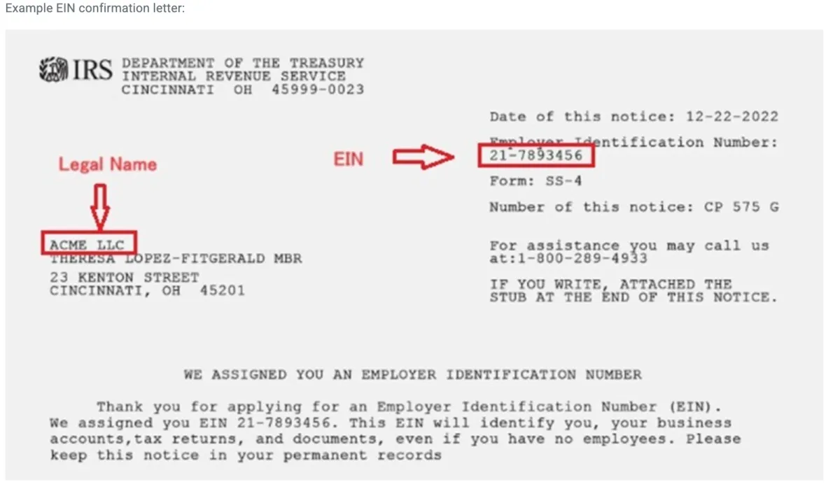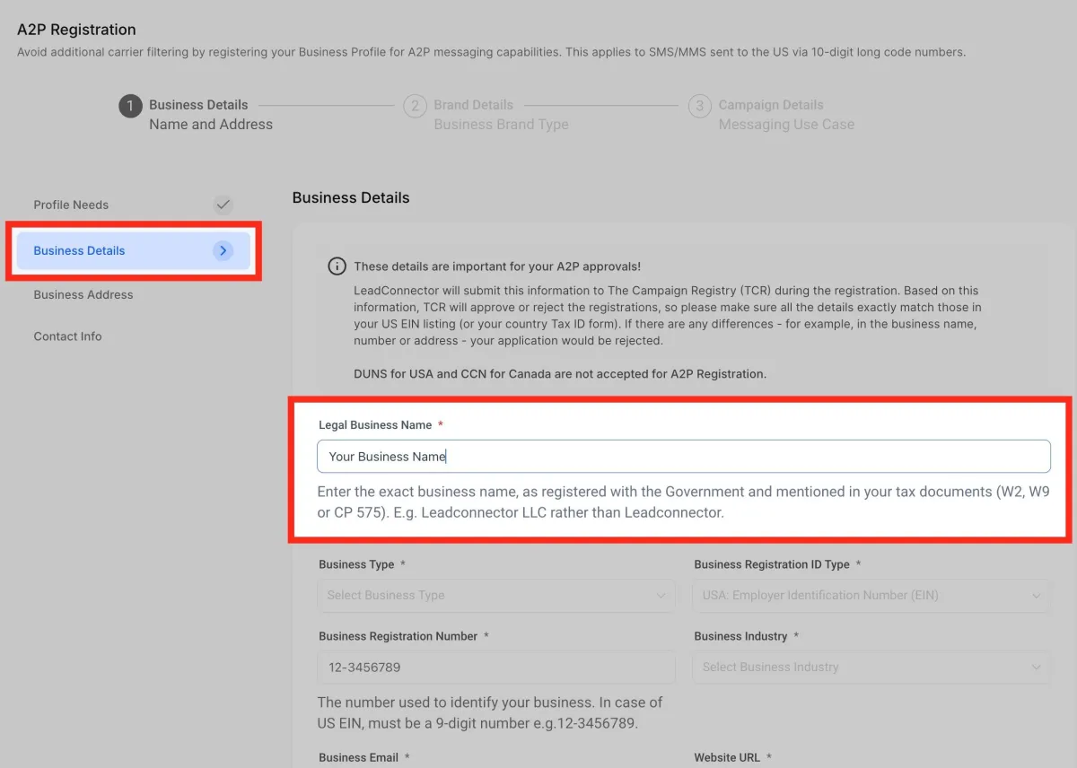 Ingresa tu número de registro comercial . En el caso de EE. UU., el EIN debe ser un número de 9 dígitos. Por ejemplo, 12-3456789.