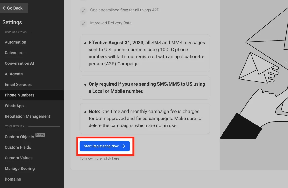 Los servicios que conectan tu página (formularios, correos, SMS, automatizaciones, etc.) necesitan que la empresa esté verificada para habilitar todas las funciones.