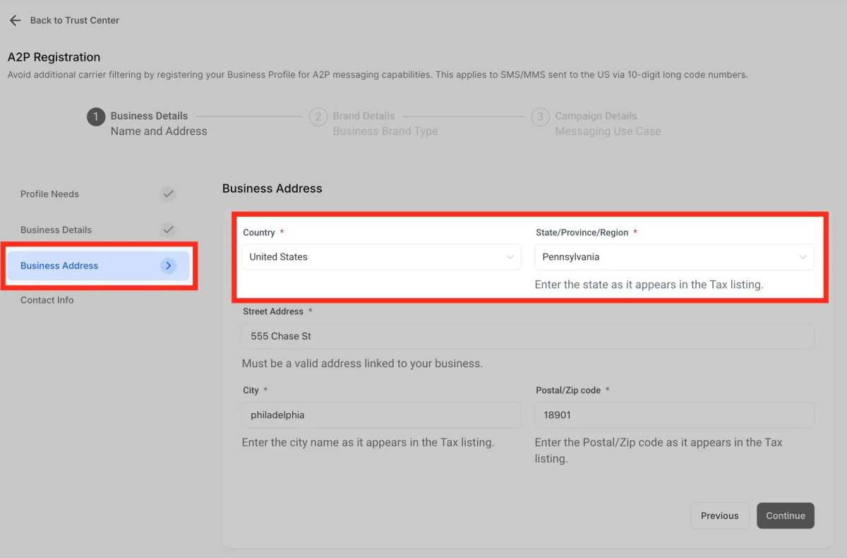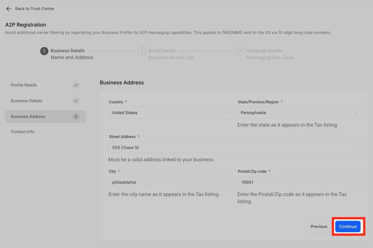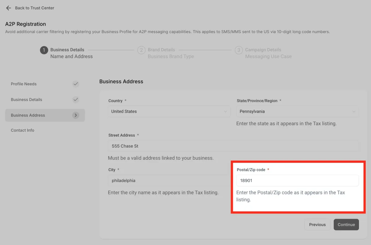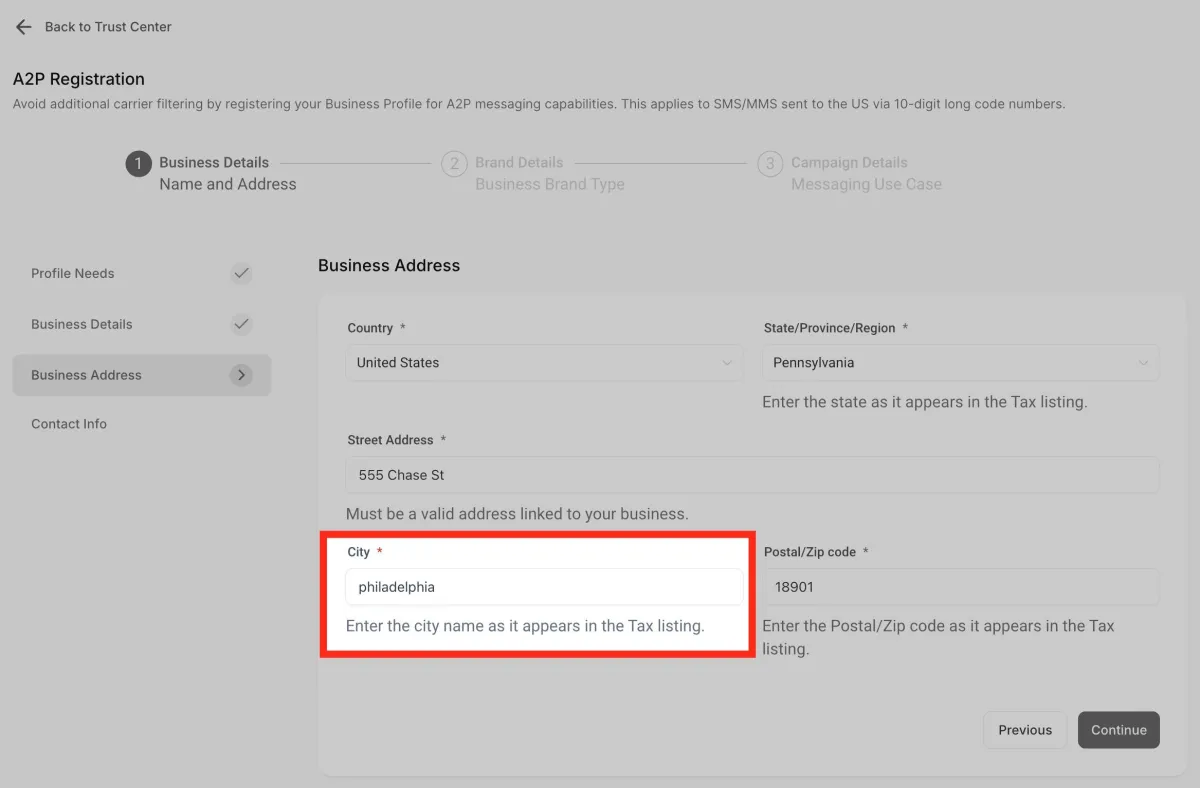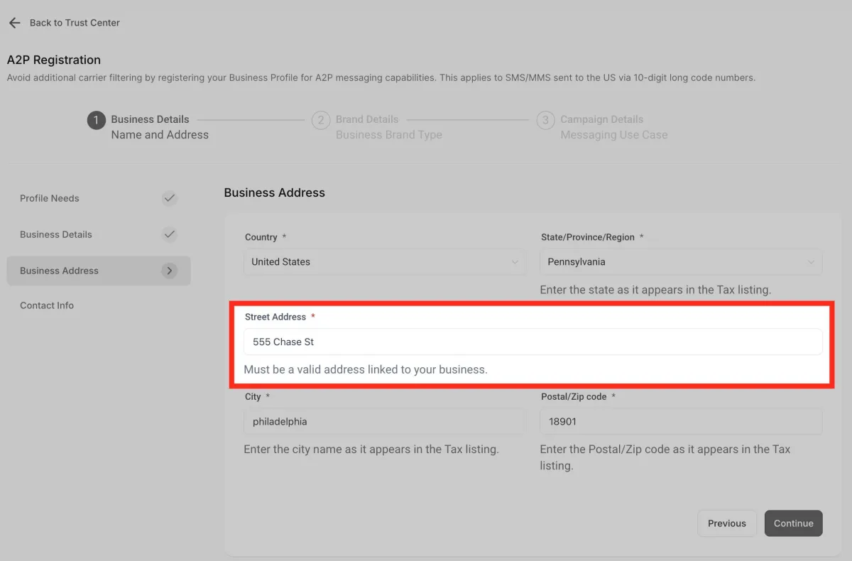 Ingresa la dirección. Asegúrese de que la dirección ingresada esté vinculada al negocio.